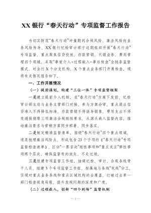 XX银行“春天行动”专项监督工作