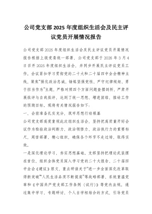 公司党支部2025年度组织生活会及民主评议党员开展情况