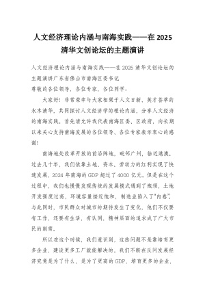 人文经济理论内涵与南海实践——在2025清华文创论坛的