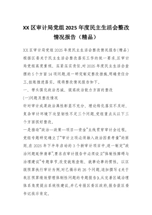XX区审计局党组2025年度民主生活会整改情况