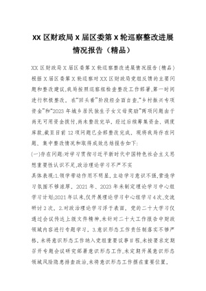 XX区财政局X届区委第X轮巡察整改进展情况