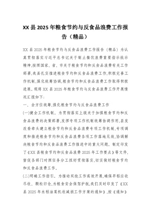 XX县2025年粮食节约与反食品浪费工作