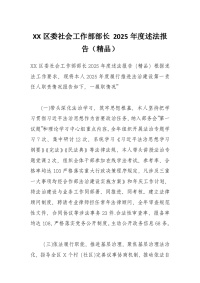 XX区委社会工作部部长 2025年度述法