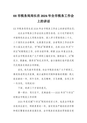 XX市税务局局长在2026年全市税务工作会上的讲话4