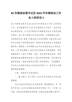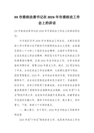 XX市委政法委书记在2026年市委政法工作会上的讲话2