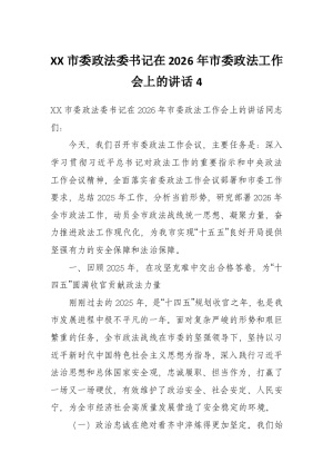 XX市委政法委书记在2026年市委政法工作会上的讲话4