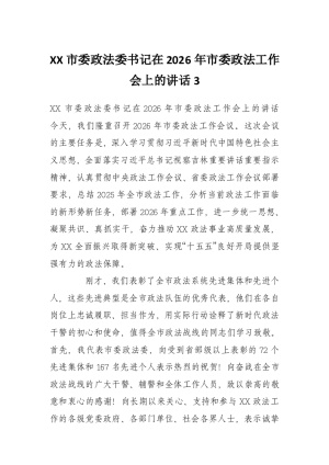 XX市委政法委书记在2026年市委政法工作会上的讲话3