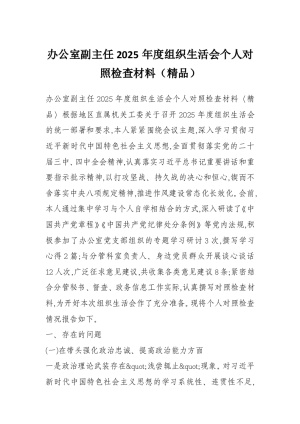 办公室副主任2025年度组织生活会个人对照检查材料(精品)