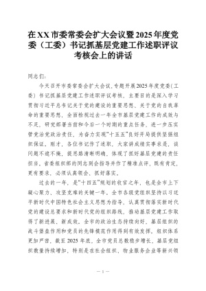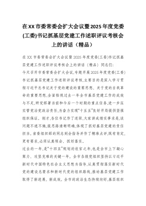 在XX市委常委会扩大会议暨2025年度党委(工委)书记抓基层党建工作述职评议考核会上的讲话(精品)