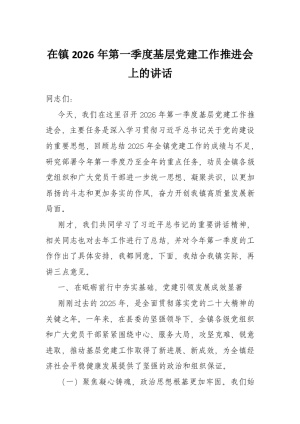 在镇2026年第一季度基层党建重点工作安排部署会议上的讲话
