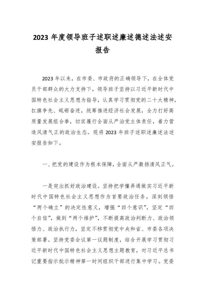 首页精选范文2023年度领导班子述职述廉述德述法述安报告