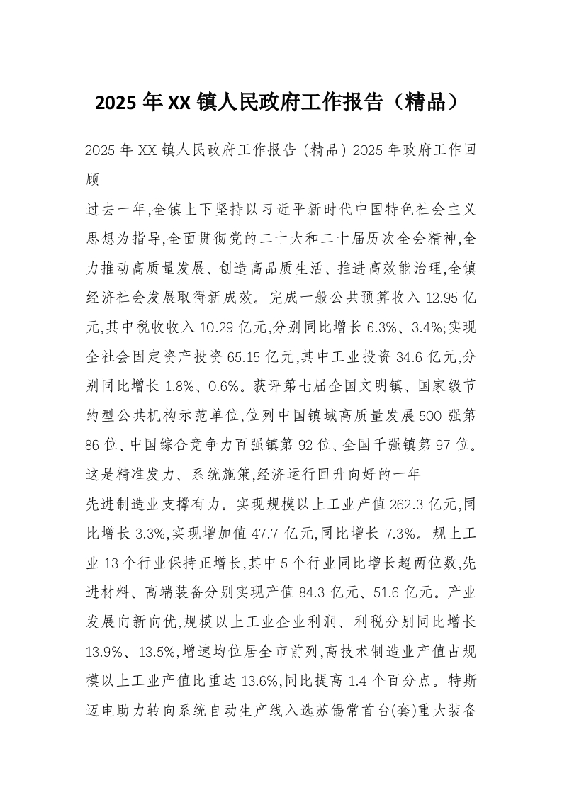 2025年XX镇人民***工作报告(精品)