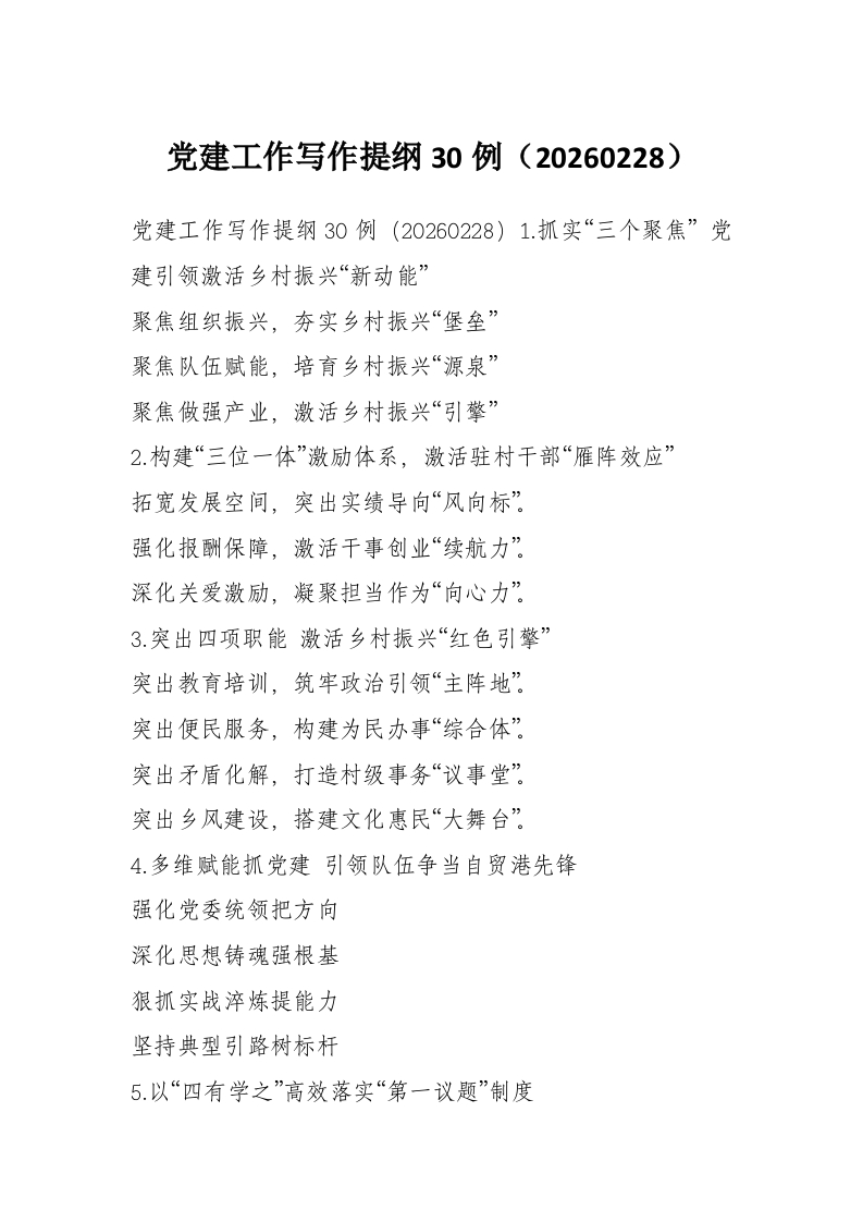 首页精选范文党建工作写作提纲30例(20260228)