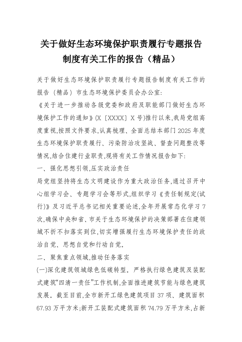关于做好生态环境保护职责履行专题报告制度有关工作的报告(精品)