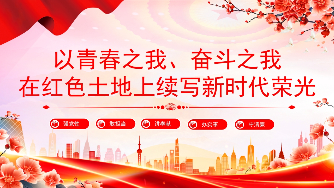 首页PPT模板基层年轻干部思想教育党课PPT以青春之我奋斗之我在红色土地上续写新时代荣光课件
