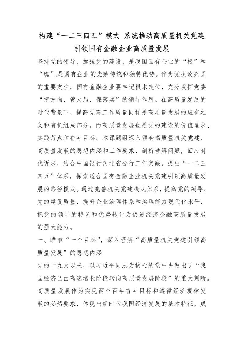 构建“一二三四五”模式 系统推动高质量机关党建引领国有金融企业高质量发展