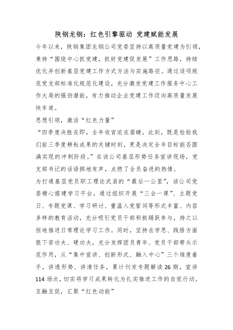 陕钢龙钢:红色引擎驱动 党建赋能发展