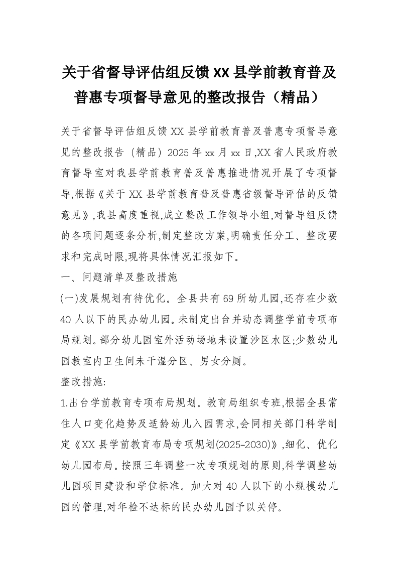 关于省督导评估组反馈XX县学前教育普及普惠专项督导意见的整改报告(精品)