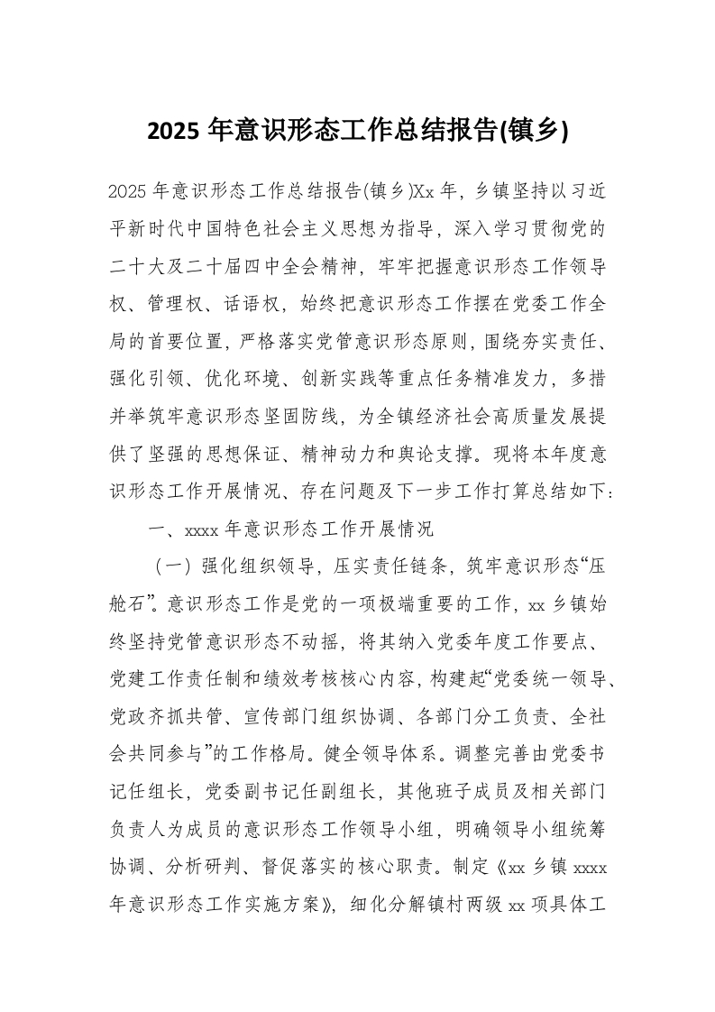 首页学习提升2025年意识形态工作总结报告(镇乡)