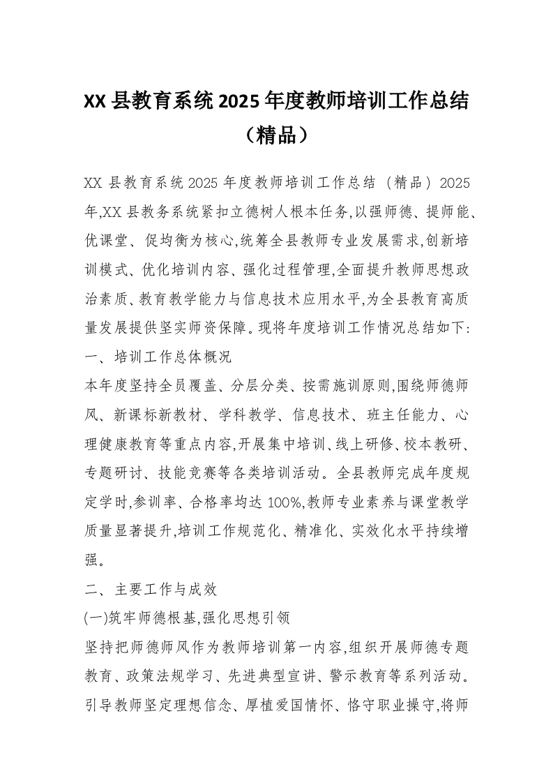 首页学习提升XX县教育系统2025年度教师培训工作总结(精品)