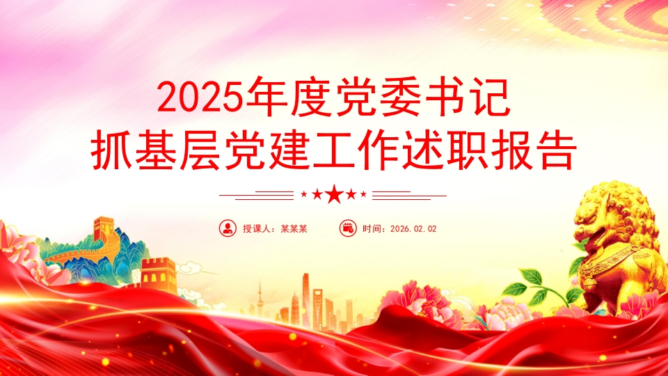 首页PPT模板简洁实用2025年度党委书记抓基层党建工作述职报告PPT模板