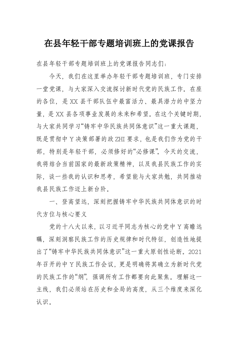在县年轻干部专题培训班上的党课报告