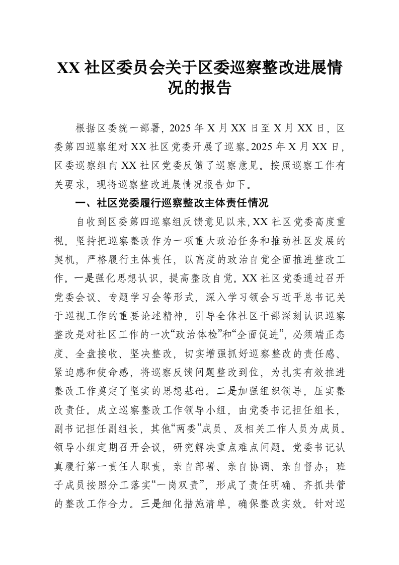 首页讲课讲稿XX社区委员会关于区委巡察整改进展情况的报告