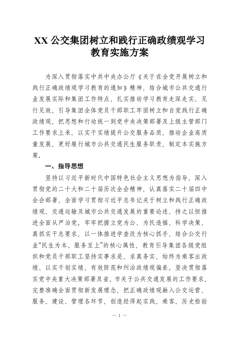 首页学习提升XX公交集团树立和践行正确政绩观学习教育实施方案