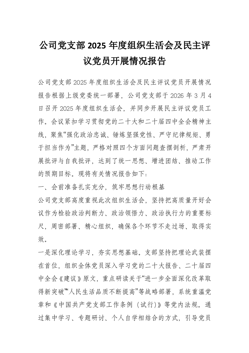 公司党支部2025年度组织生活会及民主评议党员开展情况报告