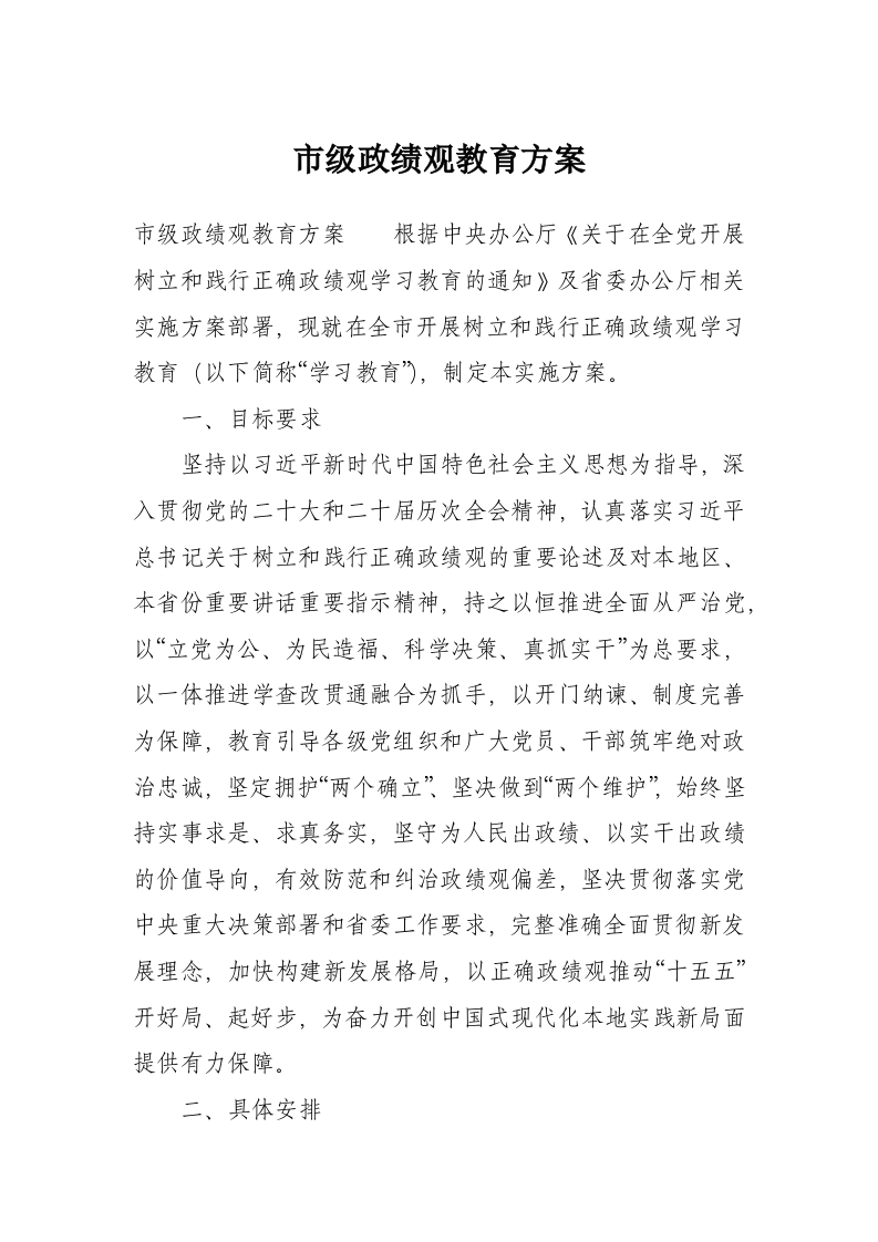 市级政绩观教育方案