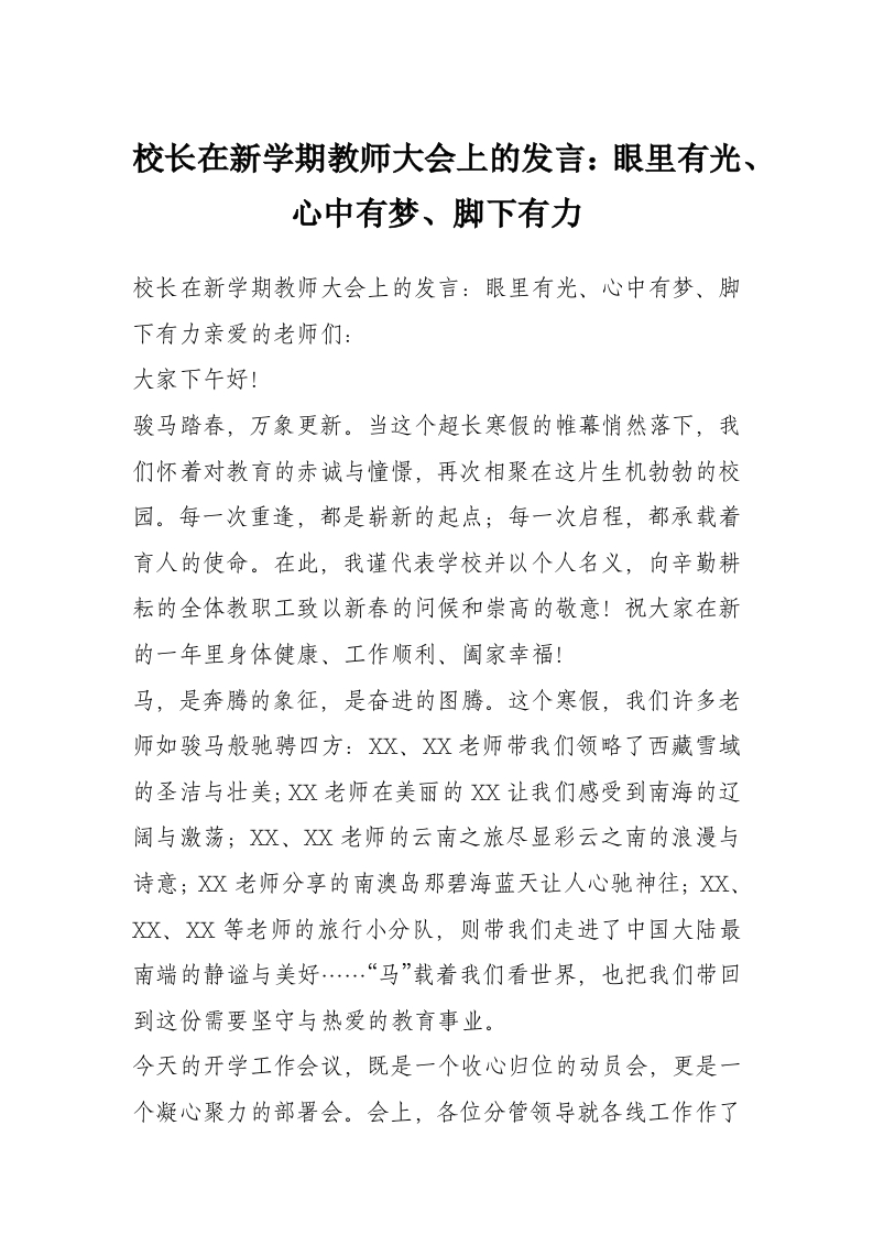 校长在新学期教师大会上的发言:眼里有光、心中有梦、脚下有力