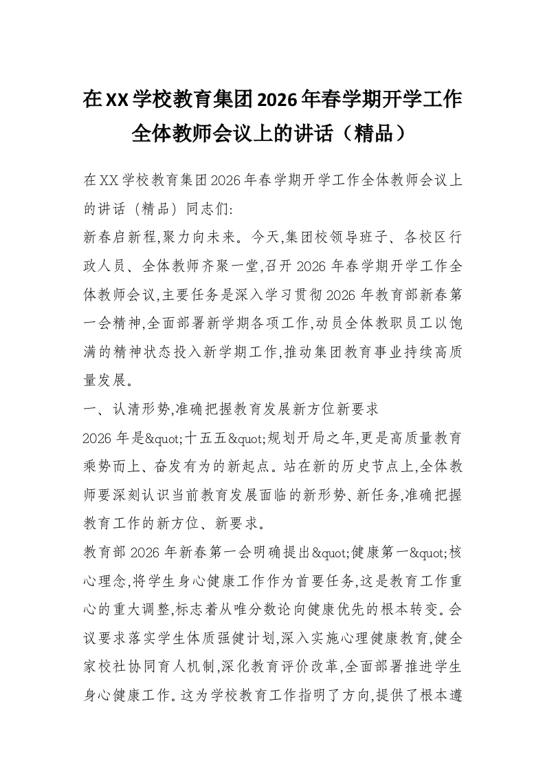 首页精选范文在XX学校教育集团2026年春学期开学工作全体教师会议上的讲话(精品)