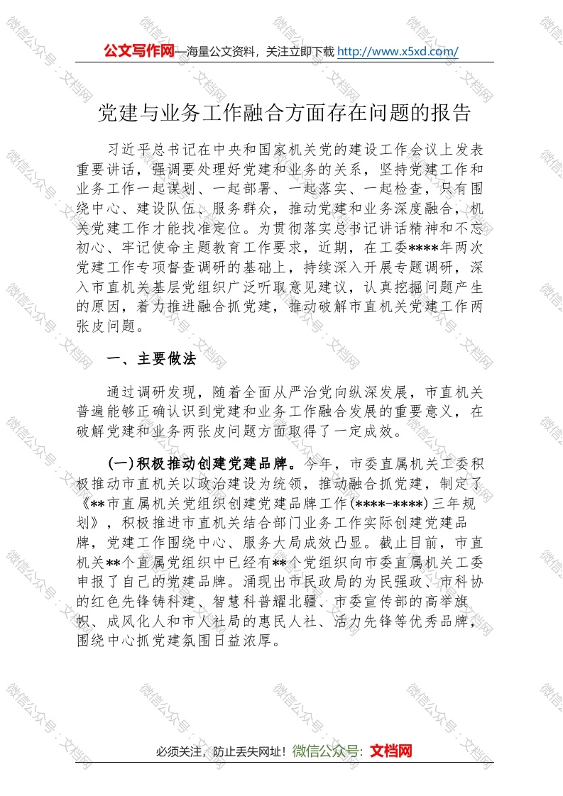 首页材料汇编党建与业务工作融合方面存在问题的报告